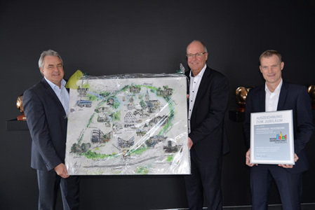 Uwe Seibel, 1. Vorsitzender der Werbegemeinschaft, gratulierte jetzt aus diesem Anlass dem Stellvertretenden Vorstandsvorsitzenden Karl-Heinz Rawert und dem Regionalleiter Lin Thiele zum Jubiläum.